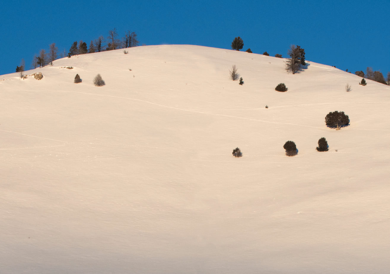 Just a few steps of post-holing in deep snow can be exhausting. You wallow around, searching for something firm to support your weight and keep you from sinking down to your crotch. Each step takes effort. But after such an extreme energy outlay, we humans get to return to our warm homes and pantries full of food. Wild animals don’t have that luxury. That’s why select swaths of public land in and around Jackson Hole are closed to humans in the winter.