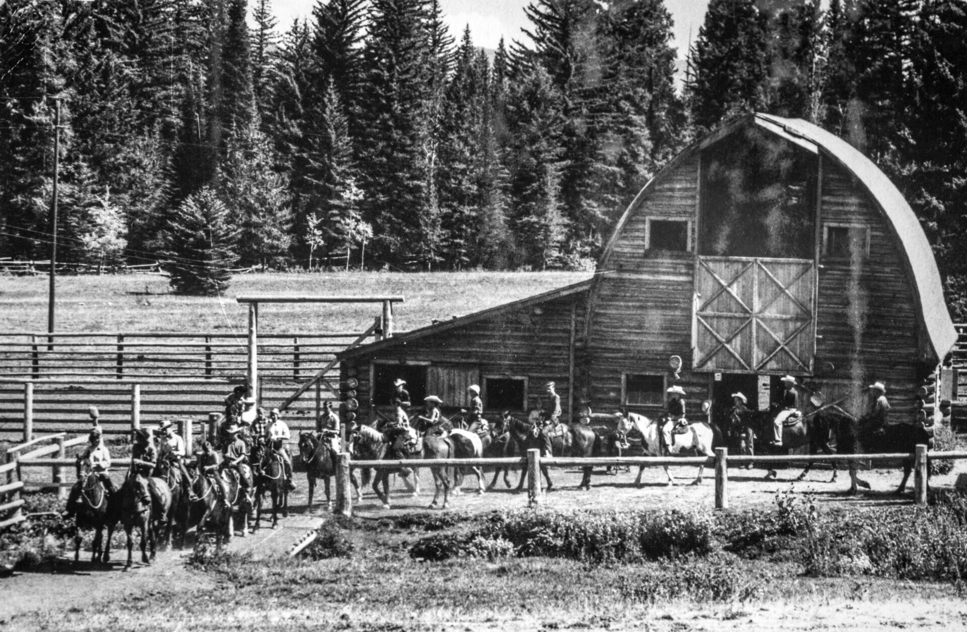 Nowadays, the cozy, rustic guest cabins accommodate up to 20 guests a night during the summer (there’s a three-night minimum stay). In winter, three cabins host six to eight guests per night. The main barn was built in the 1930s by the Bircher Brothers, who also built the EDW cabin, which was moved from nearby Fish Creek Road to the ranch during the 1950s to be Woolsey’s home. The oldest cabin, which staff call “Upper Upper,” was part of a roadhouse located on the parcel of land Woolsey purchased from Davis.